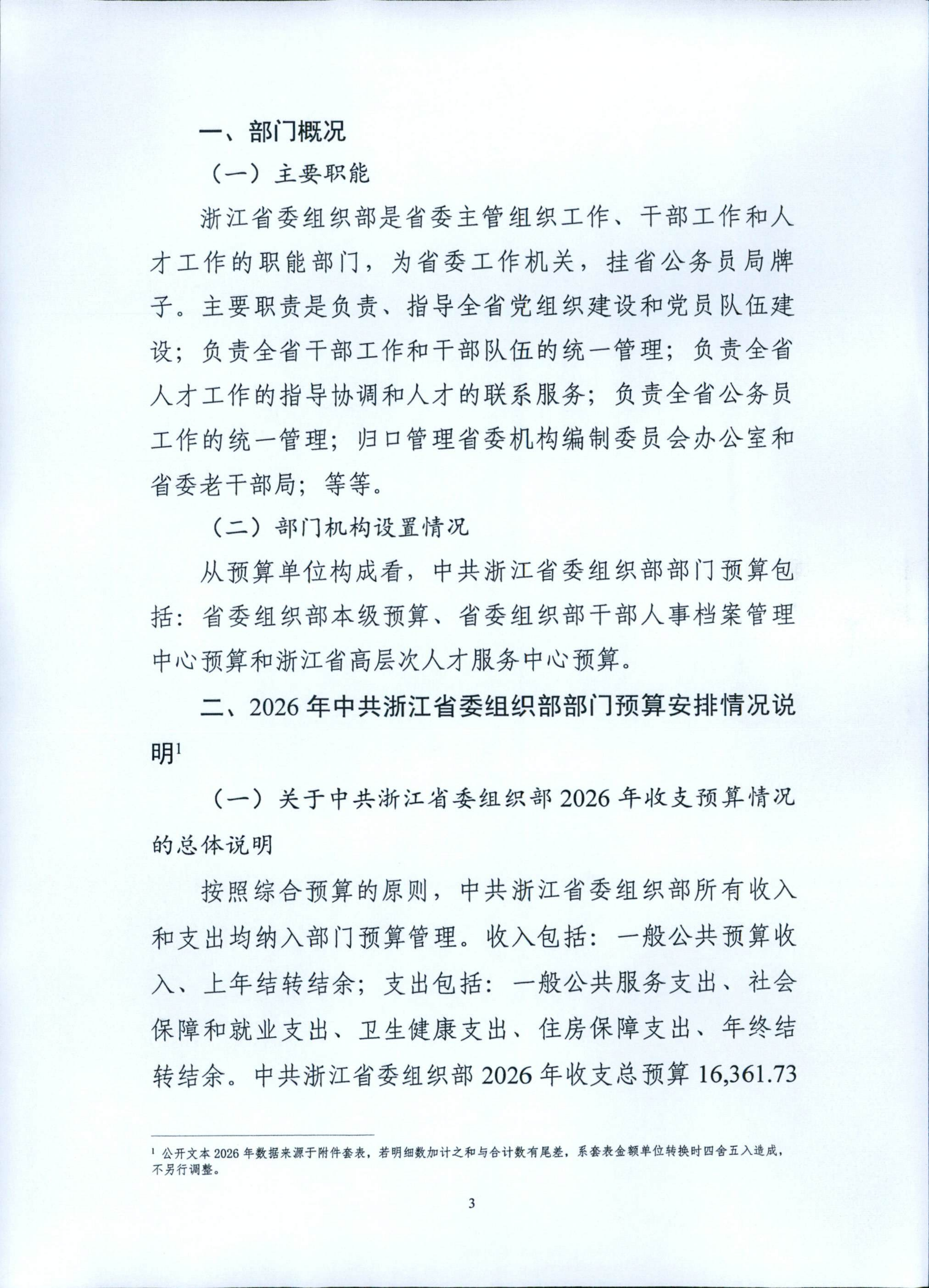 中共浙江省委組織部2026年度部門預(yù)算公開